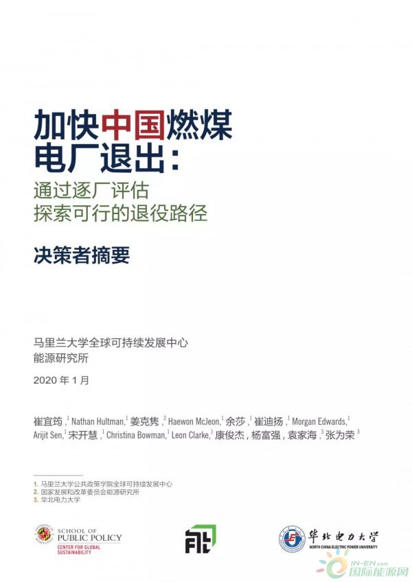 1月6日,美国马里兰大学全球可持续发展中心、发改委能源研究所和华北电力大学等单位共同发布《加快中国燃煤电厂退出:通过逐厂评估探索可行的退役路径》报告,详细阐述了在全球1.5度和2度升温目标的背景下,加快中国燃煤机组退役的可行性以及不同路径。