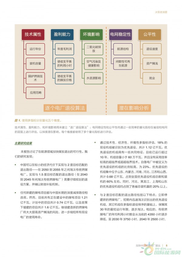 该报告由马里兰大学全球可持续发展中心主笔,发改委能源研究所、华北电力大学等单位协助提供政策分析、资产搁浅分析等内容。报告从技术性、经济性、环境影响、电网稳定与公平性5个维度,对中国现役的1000多个燃煤电厂、近3000个机组进行了综合评价;按照得分高低对所有机组进行了分类和退役排序,并结合中国为实现全球升温控制在2℃和1.5℃情景下的减排前景,提出了中国燃煤电厂可持续退出的路径选择。