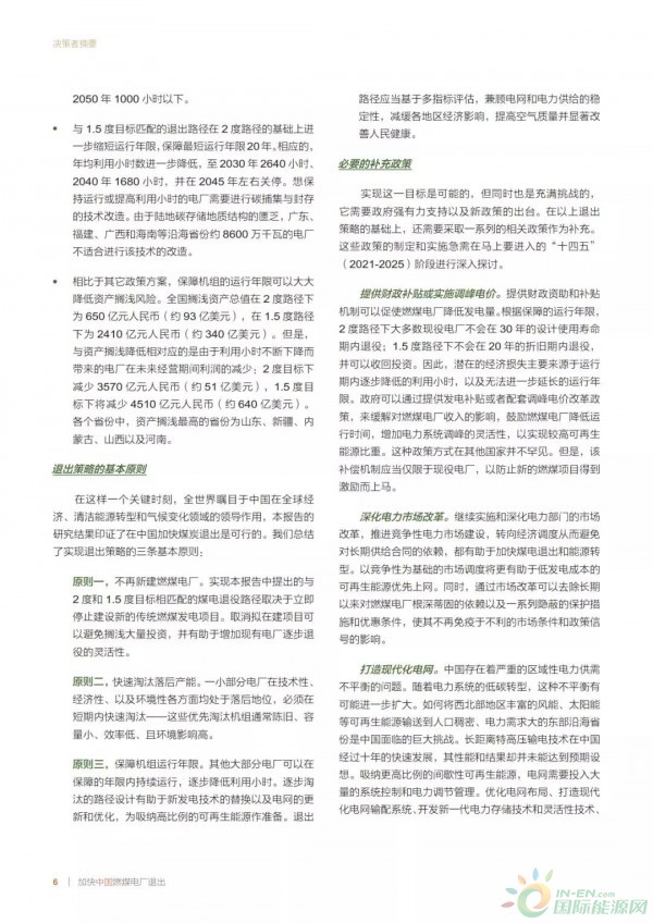 2、不再新增燃煤电厂:实现报告中提出的与2℃和1.5℃目标相匹配的煤电退役路径取决于不再新增传统的燃煤发电项目。越早停止建设新的燃煤电厂,未来实现深度减排的成本就越小。取消拟在建项目可以避免大量投资搁浅,并有助于增加现有电厂逐步退役的可行性。