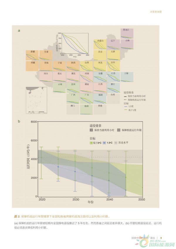 1、中国可以在较小的经济代价下实现与2℃目标匹配的退出路径——在2050—2055年之间淘汰传统燃煤电厂。实现与1.5℃目标匹配的退出路径(在2040—2045年间淘汰传统燃煤电厂)需要仔细规划的退役方案,并辅以财政补贴。