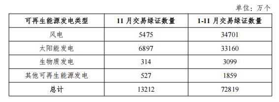 2025年11月,全国交易绿证1.32亿个,其中绿色电力交易绿证2539万个。2025年1-11月,全国共计交易绿证7.28亿个,其中绿色电力交易绿证2.28亿个。