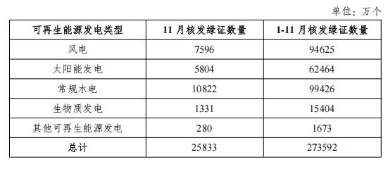 全国绿证核发情况一览表