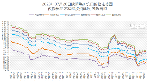 ▲7月20日内蒙和陕西煤矿坑口价格走势图